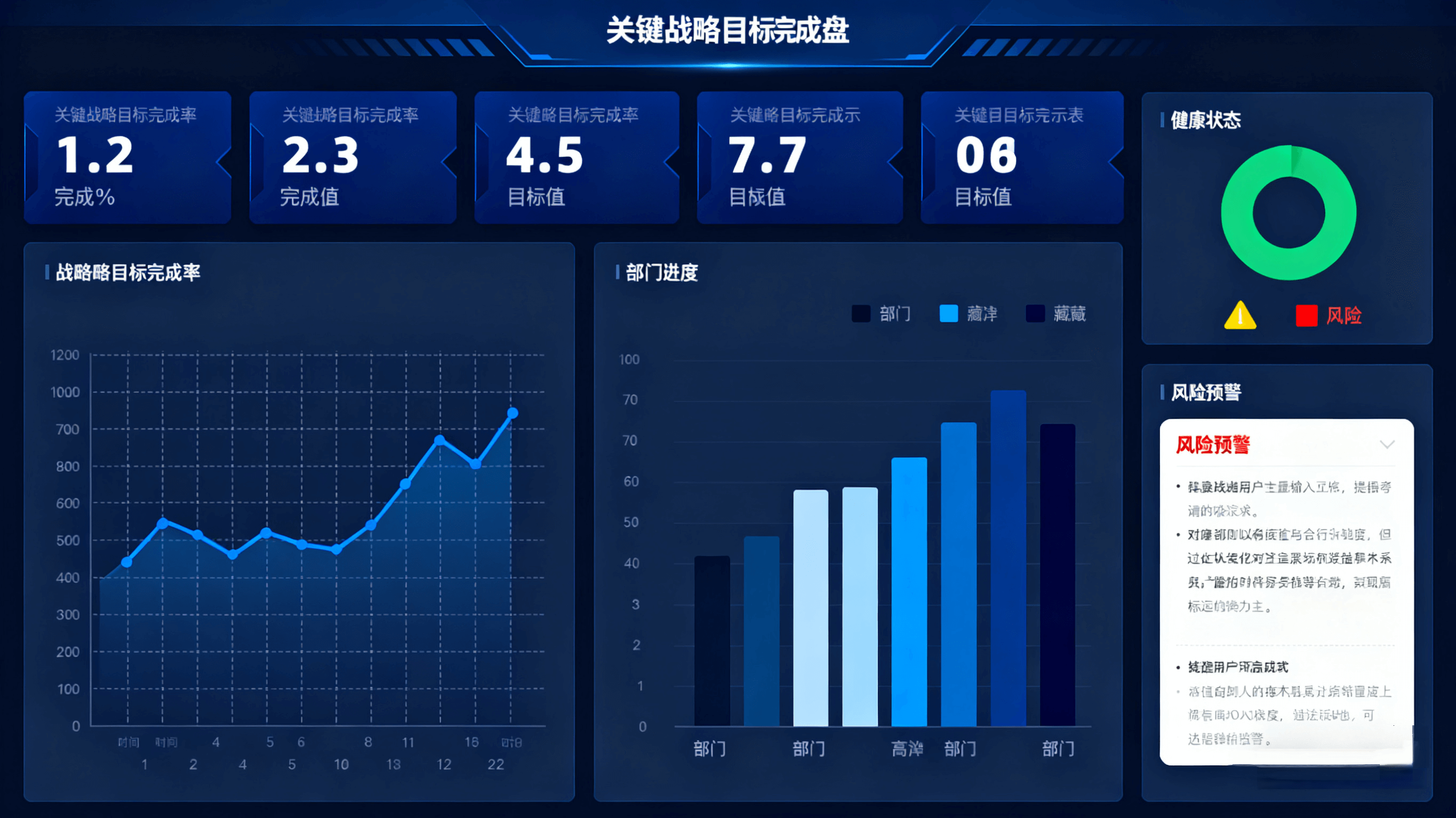 通过直观的图表和指标卡片,实时展示战略目标的完成情况、趋势变化和健康状态,让管理层一目了然。