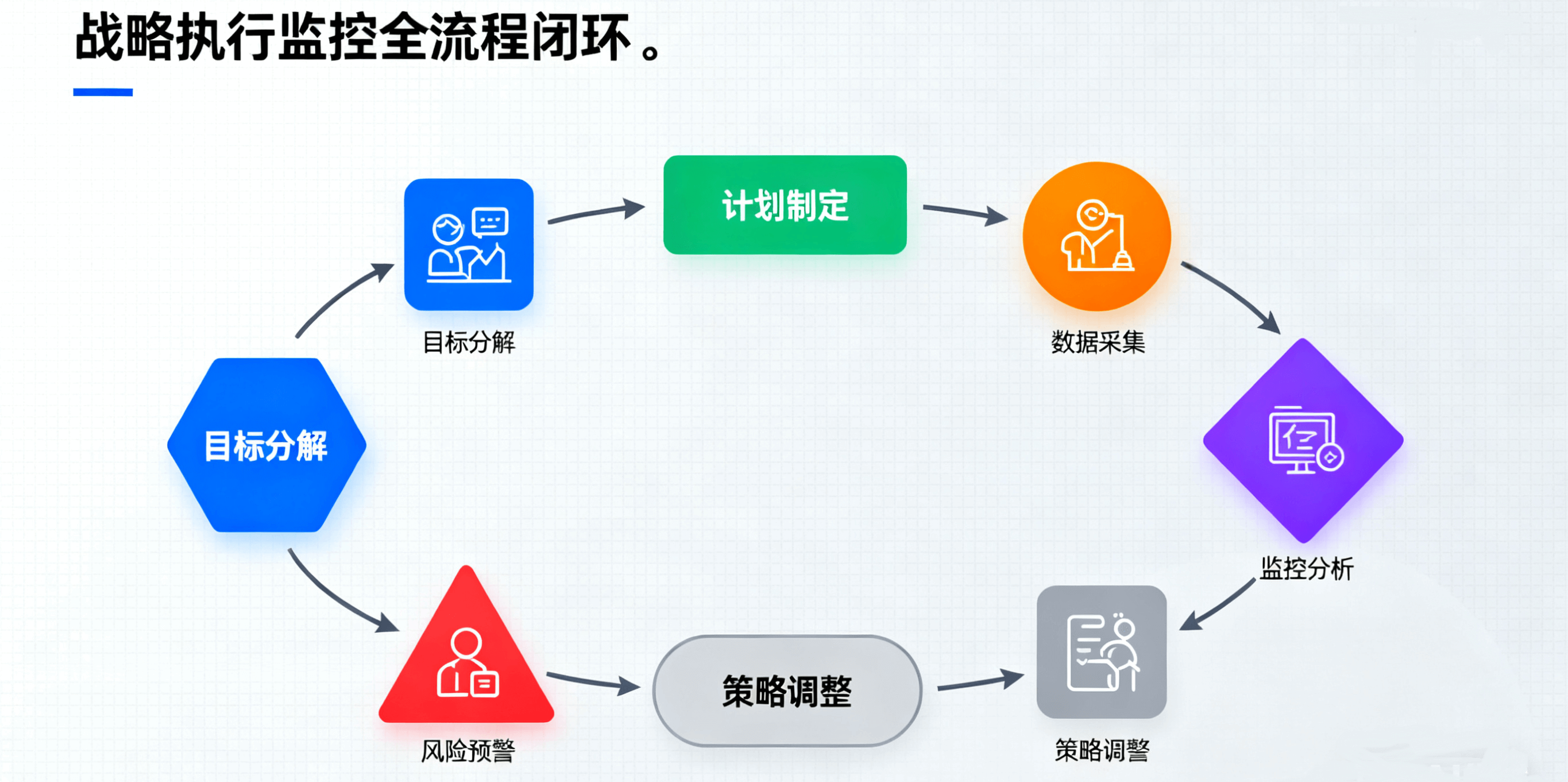 自动识别战略执行过程中的风险和偏差,提供智能分析和调整建议,帮助企业及时纠偏,确保战略目标实现。