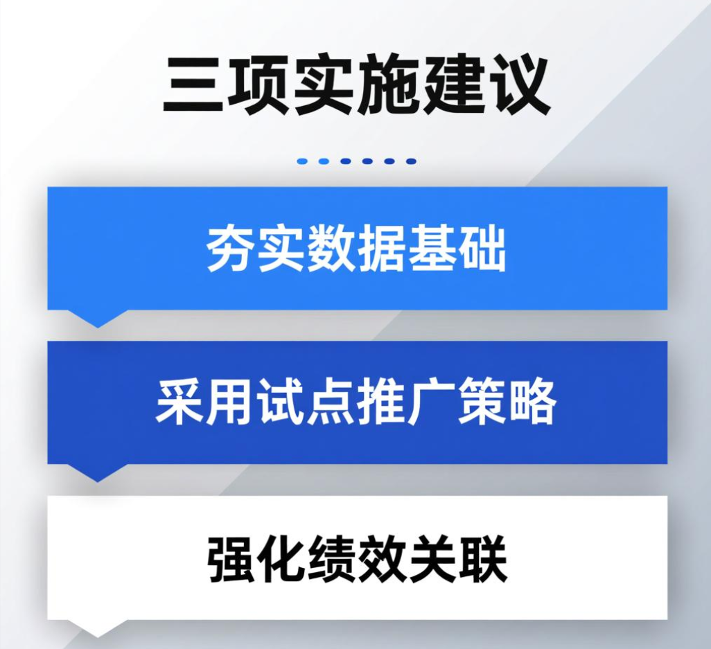 2. 采用试点推广策略:优先选择核心业务单元完整运行四个步骤,积累经验后再全面推广,控制转型风险;