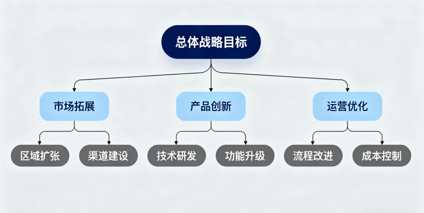 借助“战略拆解树”工具,系统将集团目标逐级分解为部门KPI乃至个人任务,并明确责任人、时间节点和验收标准。例如“年营收增20%”可拆解为销售部新增客户数、生产部产能提升、财务部成本控制等具体指标。一家家电企业使用该功能后,任务无人负责的情况减少90%,第四季度八成任务按时达成。